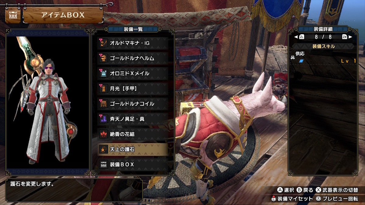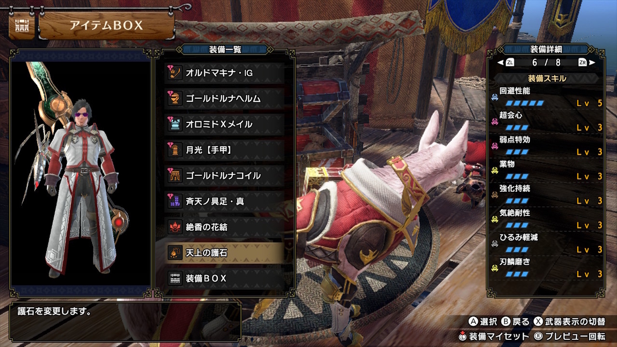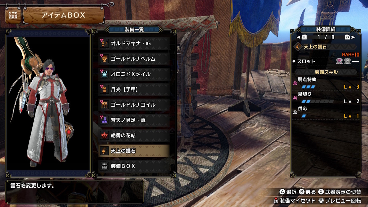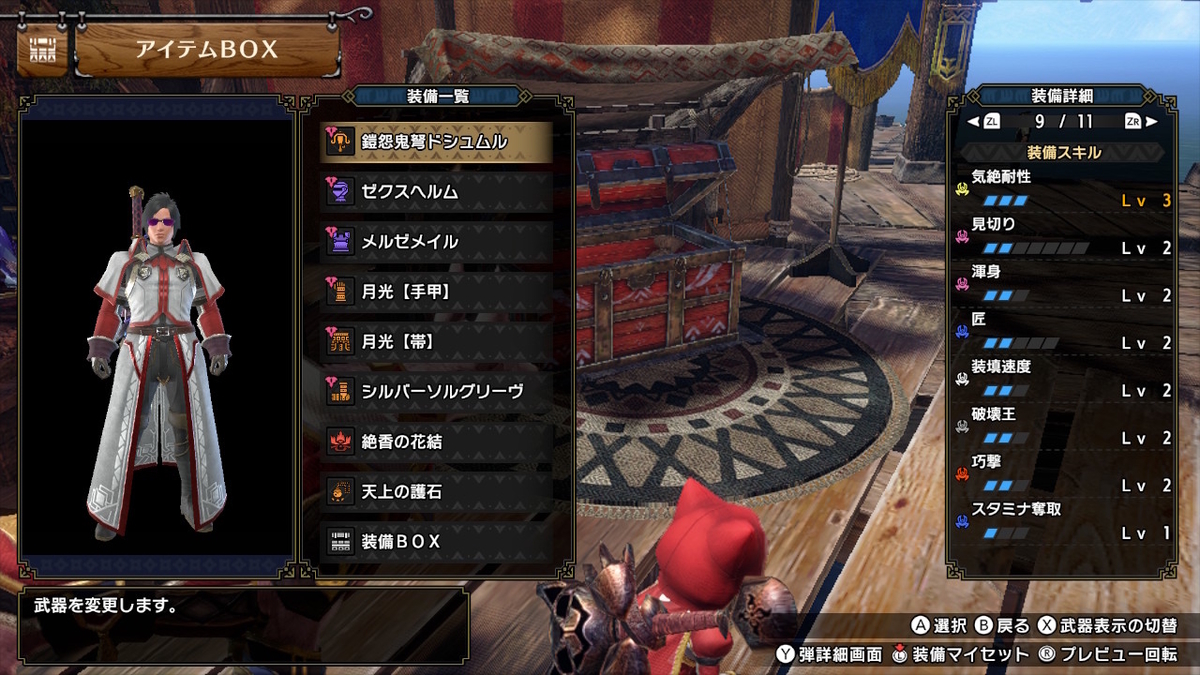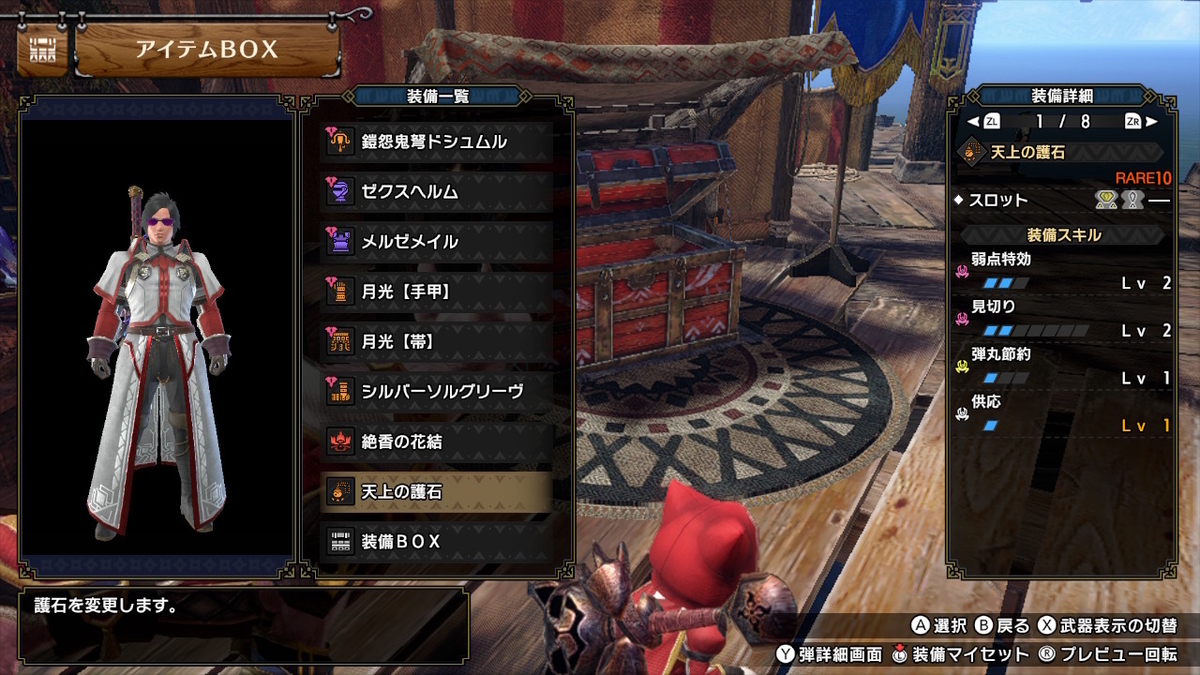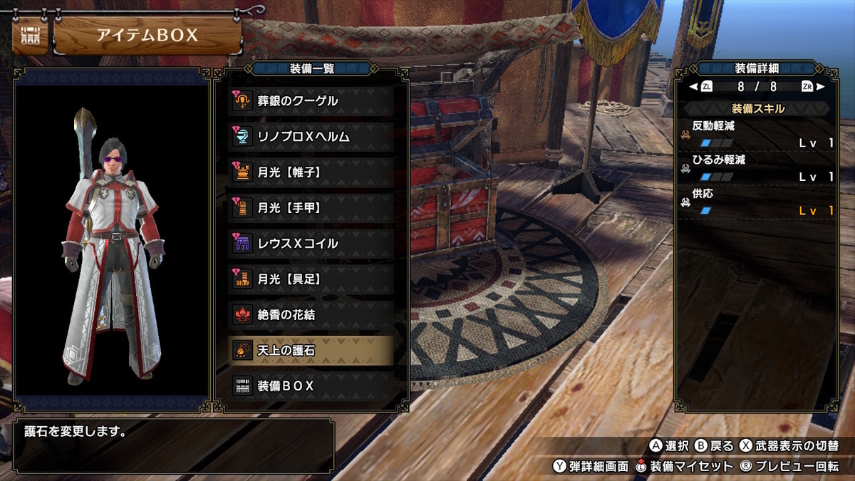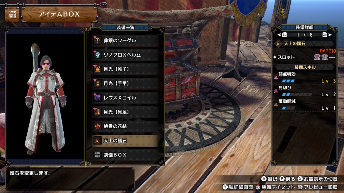 ・腰[月光【帯】]…スタミナ奪取+1、散弾・拡散矢強化+1