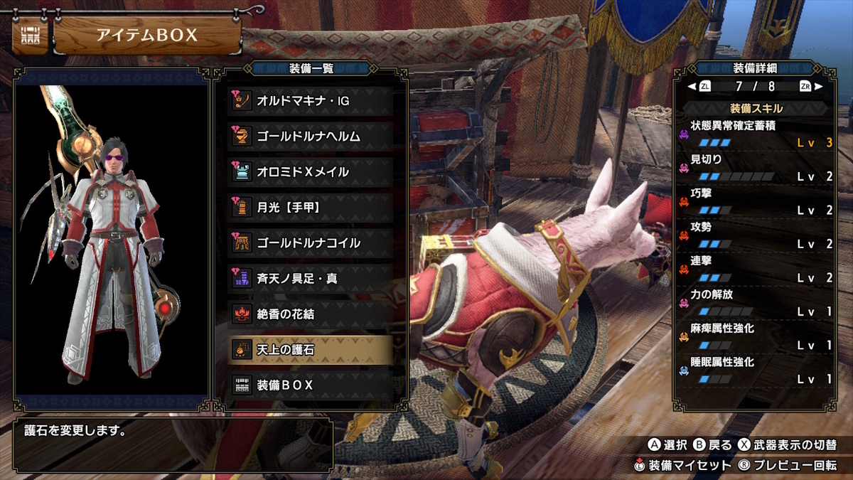 ゴールドルナシリーズの【状態異常確定蓄積】を運用する装備。