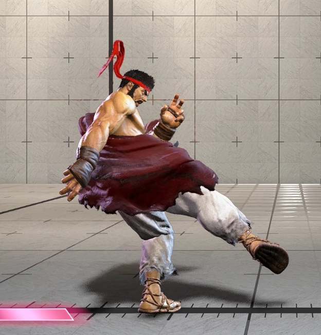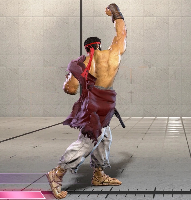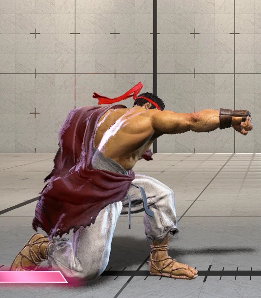 画面端ではリュウにノックバックが発生しないので密着状態での攻めが継続するため柔道が可能。画面端で前投げ後に5弱Pのフレーム消費で+4F。
