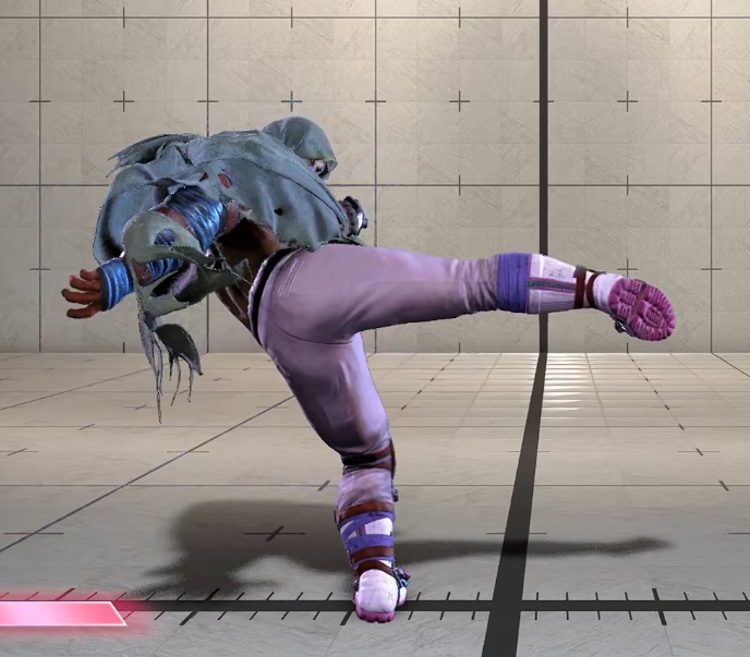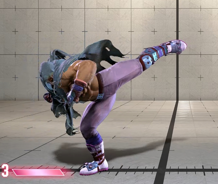 画面端の強バックフィスト締めからは前ステ>4強Kが持続重ねになる。+4F取れるので投げと2中Pの二択にいける。